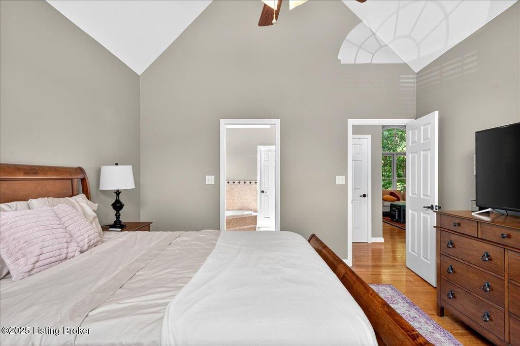 Welcome to this beautifully maintained two-story home, offering 4 bedrooms and 4 bathrooms in a picturesque, park-like neighborhood. With exceptional landscaping and standout curb appeal, this property blends charm and functionality from the moment you arrive. Step into a bright and inviting main level, where floor-to-ceiling windows in the great room flood the space with natural light and showcase the stunning hardwood floors. A cozy gas fireplace adds warmth and ambiance year-round. The spacious kitchen features ample cabinetry and stainless-steel appliances—perfect for both everyday cooking and entertaining. A convenient laundry room sits just off the kitchen for added ease. The formal dining room, overlooking the beautifully landscaped front garden, provides an ideal setting for gatherings. A half bath is thoughtfully located between the kitchen and dining room. The main-level primary suite is generously sized, with vaulted ceilings, a walk-in closet, and a luxurious en-suite bathroom featuring an oversized vanity, soaking tub, and walk-in shower. Upstairs, you'll find three well-proportioned bedrooms, including one flexible enough to serve as a den, playroom, additional living area, or dedicated office. A full bathroom completes the upper level. The walk-out basement expands your living options with a second family room, a game room area, and a versatile space ideal for crafting--or easily convertible into a second kitchen. A half bath with existing plumbing for a full tub or shower, along with over 300 square feet of unfinished storage space, adds even more potential. Step outside to your own private retreat: an expansive backyard with mature trees and lush greenery, featuring a deck with a louvered-roof pergola. Beneath it, you'll find a hot tub--perfect for relaxing or entertaining. The yard also includes an irrigation system for added convenience. This home offers comfort, space, and flexible living in a serene setting--just steps from Waverly Park, with walking and biking trails, a pond, and more. Schedule your tour today to experience everything this exceptional property has to offer!