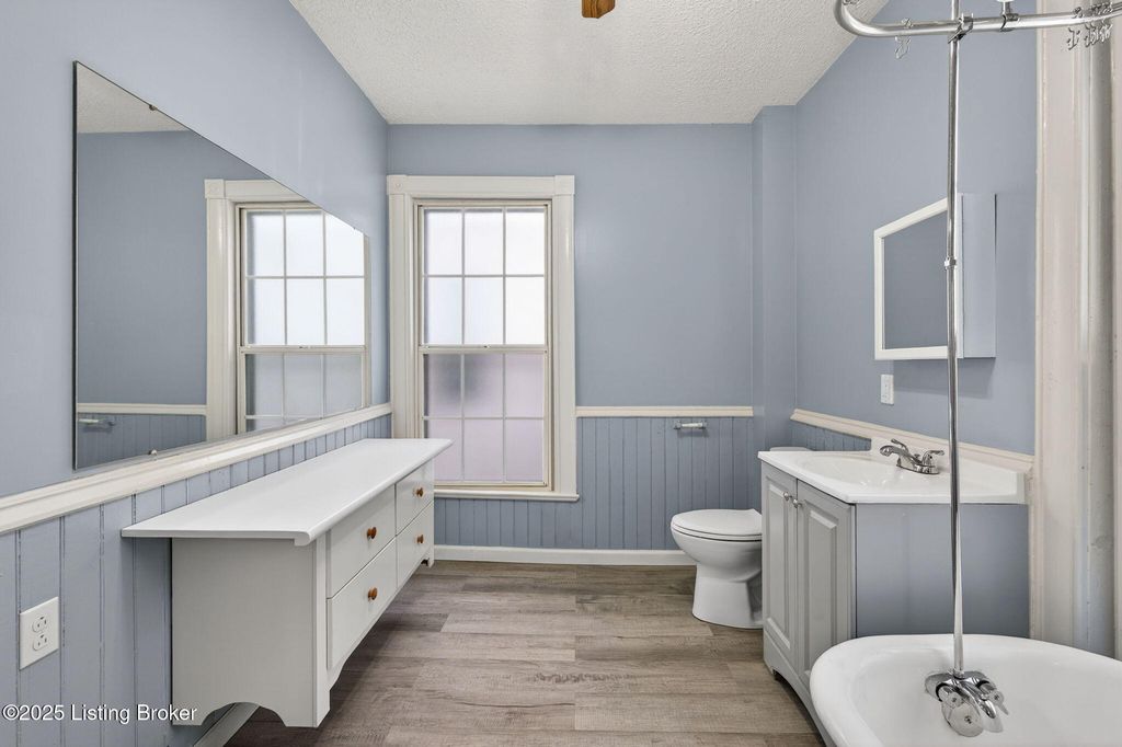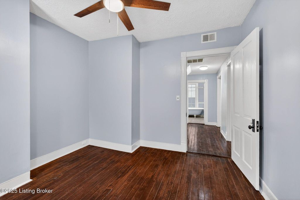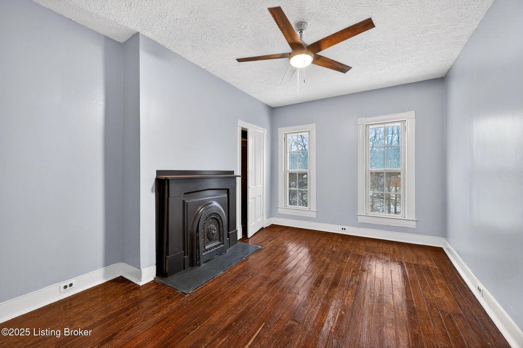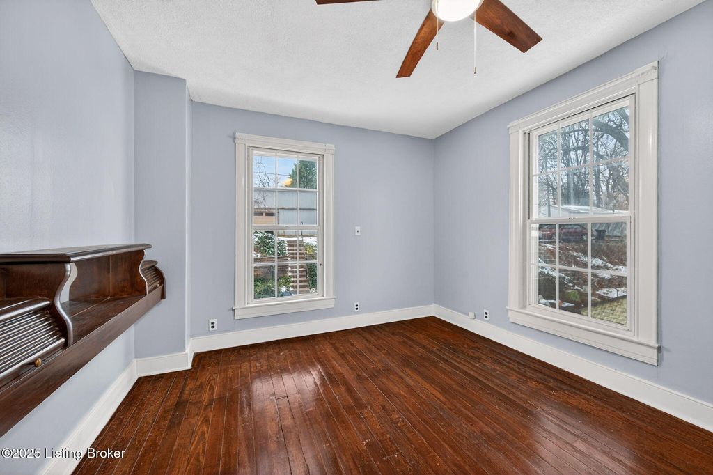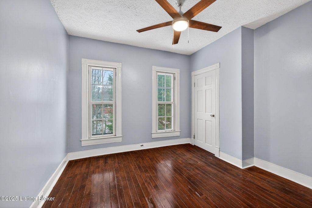 Charming Clifton home in a secluded setting overlooking Bingham Park, featuring a large covered front porch, mature trees, and off-street parking. Inside, the first floor offers new flooring throughout, fresh paint, and a welcoming foyer with wood-grain vinyl plank flooring, original staircase, and pocket doors leading to the living room. The living room is filled with natural light and includes new carpet, updated lighting, and a decorative fireplace with mantel and mirror. The dining room is open to the living room with direct access to the kitchen, creating an easy flow for everyday living and entertaining. The kitchen features new stainless steel appliances, granite countertop, beadboard detailing, and a pantry. A versatile multipurpose room with natural light and access to a half bath provides flexible space for an office, playroom, or additional living area. A dedicated laundry/mud room offers extra storage and convenience. Upstairs, refinished hardwood floors run throughout the second level, including the primary bedroom with double-width closet and ceiling fan, plus two additional bedrooms - each with hardwood flooring and ceiling fans. The full bath is generously sized and features a clawfoot tub with shower and floating vanity. Additional highlights include attic access, storage closets, and a new HVAC system. Located in a desirable neighborhood with park views and privacy - this home blends character, updates, and location!