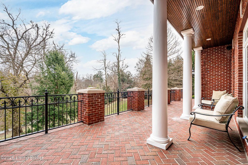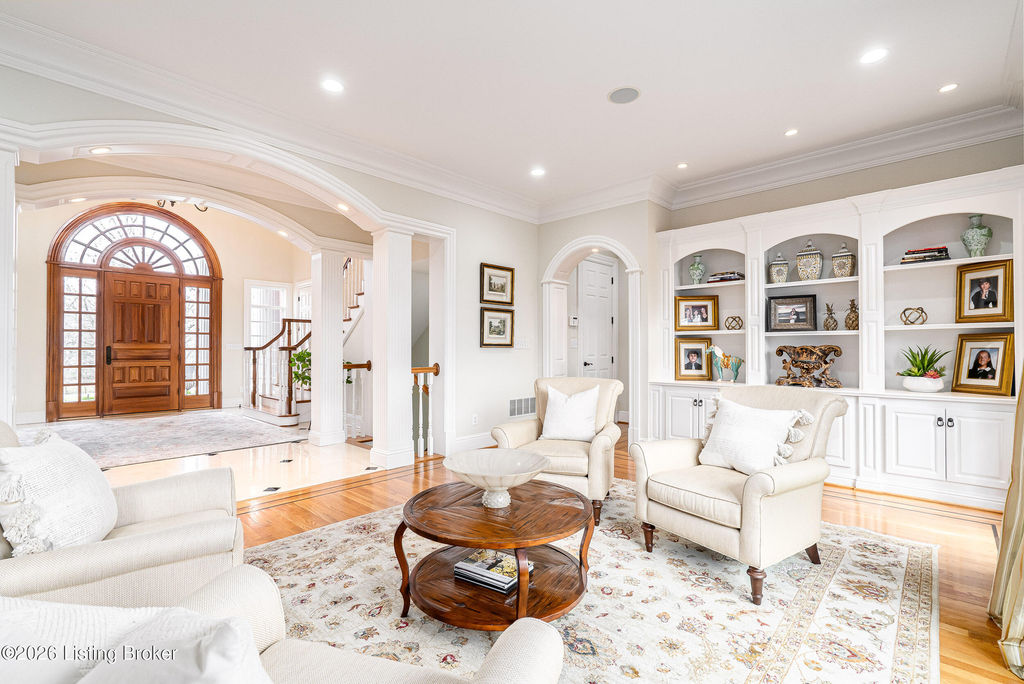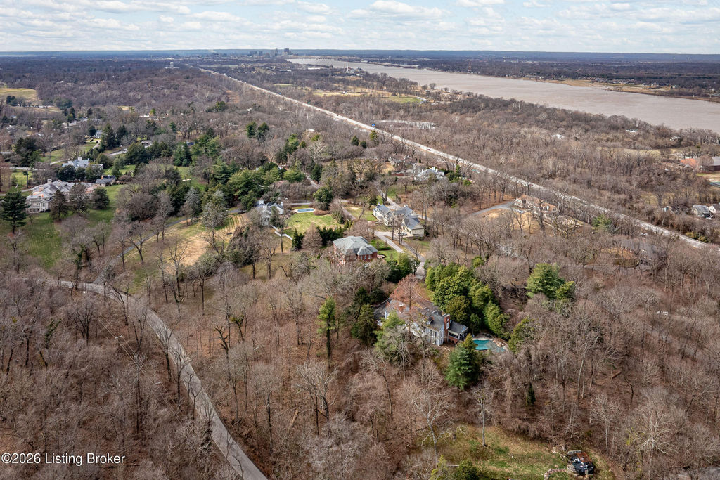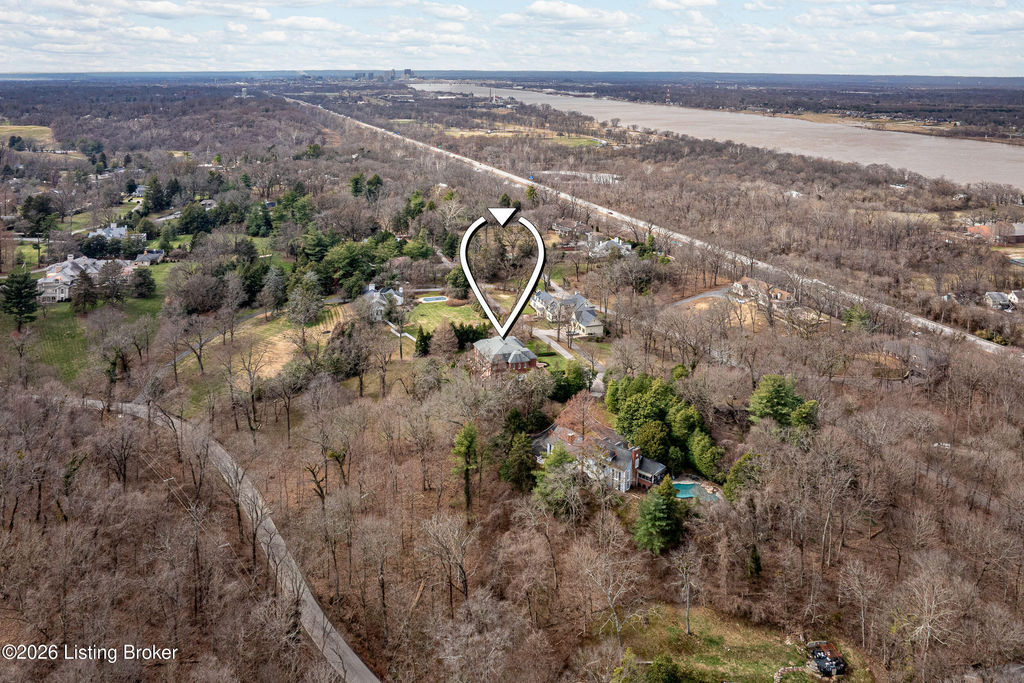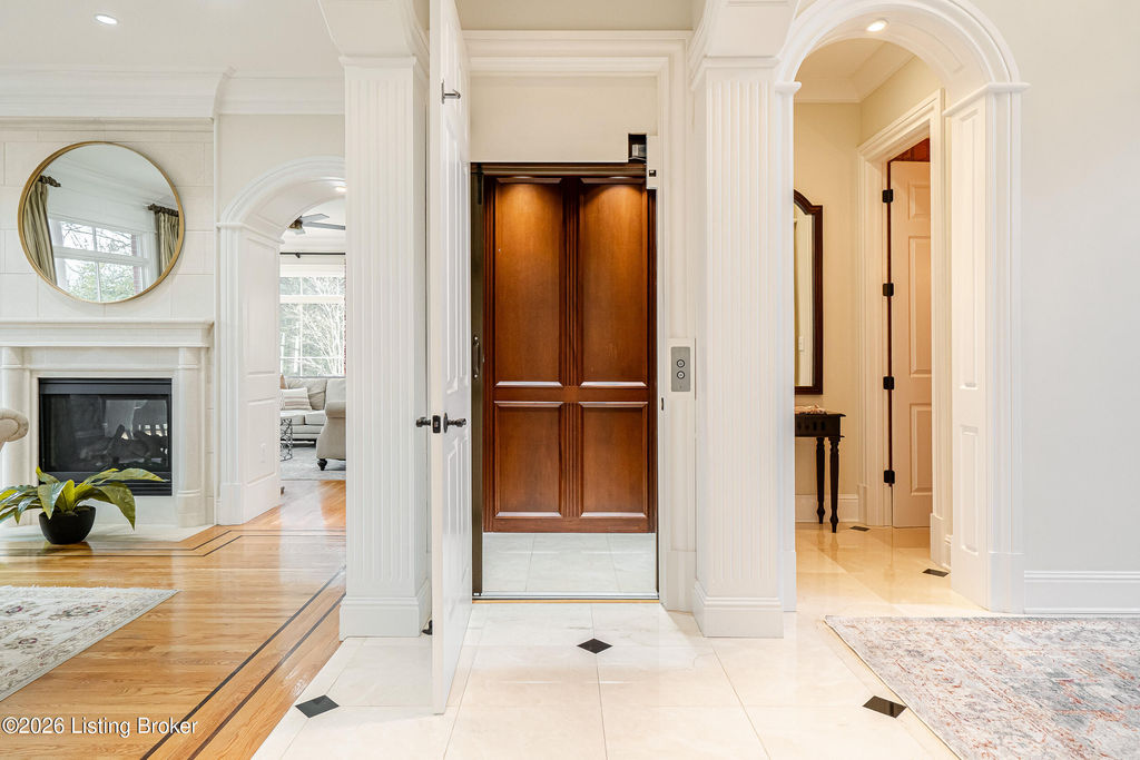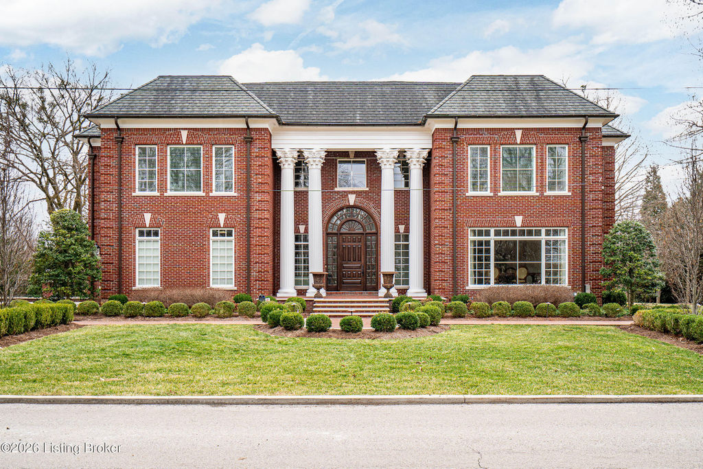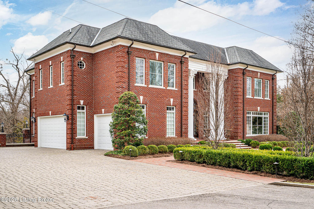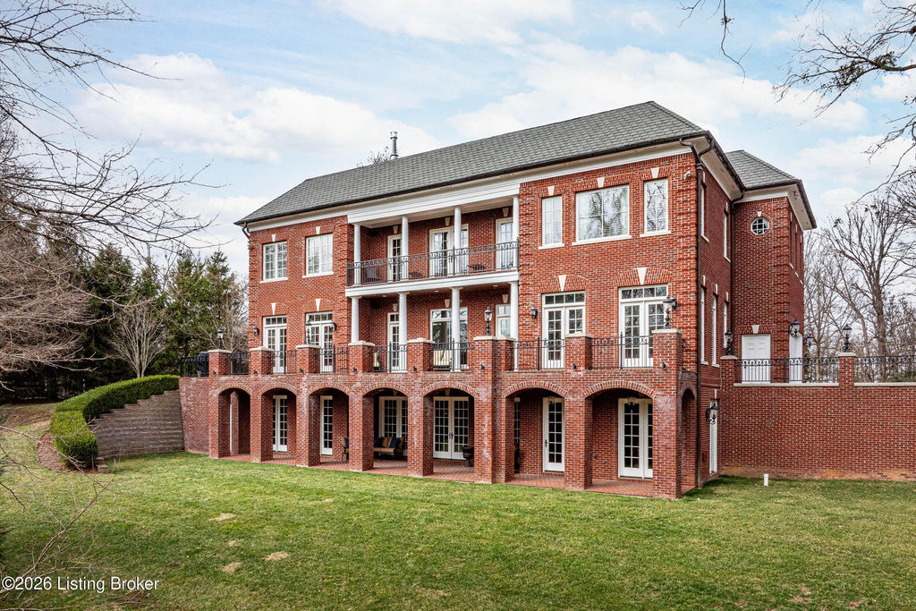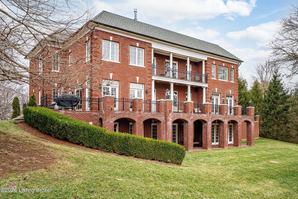 Custom-built in 2006 and ideally situated on over 1.7 acres in prestigious Indian Hills, this five-bedroom home offers quality construction, thoughtful design, and modern efficiency. Each bedroom features its own en-suite bathroom, along with multiple living spaces designed for comfort and entertaining. The home includes geothermal heating and cooling, a new roof 2026, and an elevator servicing all three floors. The welcoming foyer introduces arched entryways, detailed millwork, hardwood flooring, and vaulted ceilings that continue across the main level. The great room features built-in bookcases, a gas fireplace, and expansive rear views from the balcony that spans the back of the residence. The gourmet kitchen offers an oversized island, custom cabinetry, high-end appliances, and a butler's pantry, with an adjacent formal dining room. A tucked-away office space with access to the rear patio has potential for a first-floor bedroom. Upstairs, three generous en-suites include a well-appointed primary bedroom with a sitting area, private balcony access, dual oversized closets, and a spacious bath with soaking tub and separate shower. The lower level expands the home's versatility with a large living area, full kitchen, theater room, hidden wine cellar, and additional bedroom suite. A three-car garage completes this exceptional Indian Hills property. Featured in a Courier Journal article dated April 23, 2023.