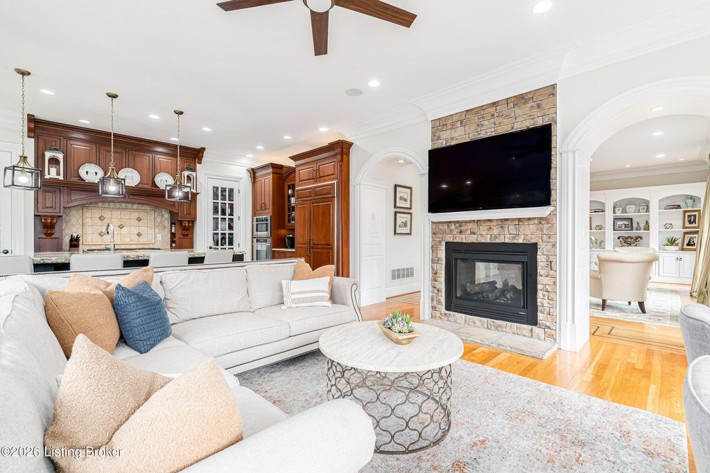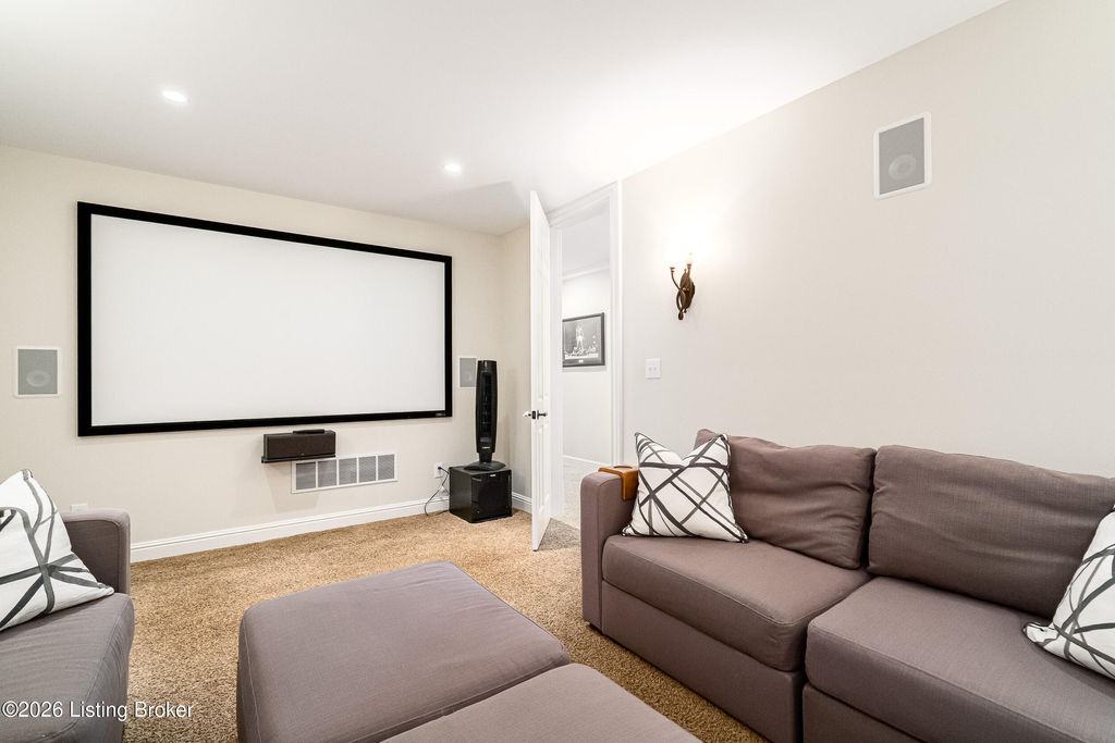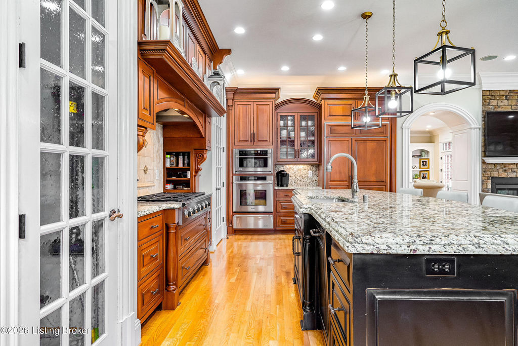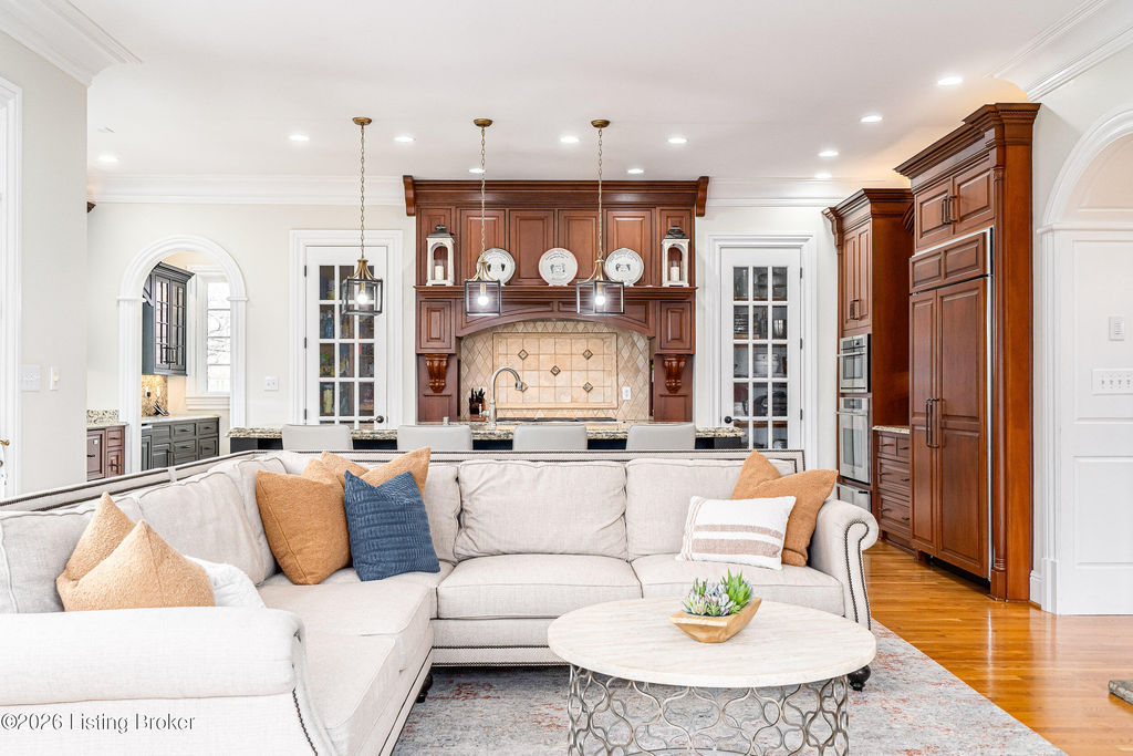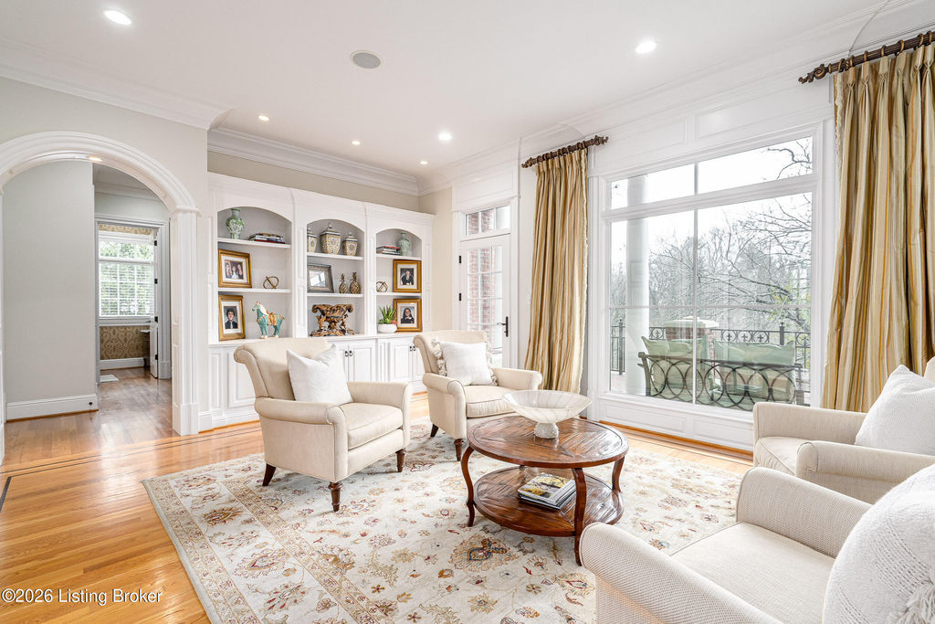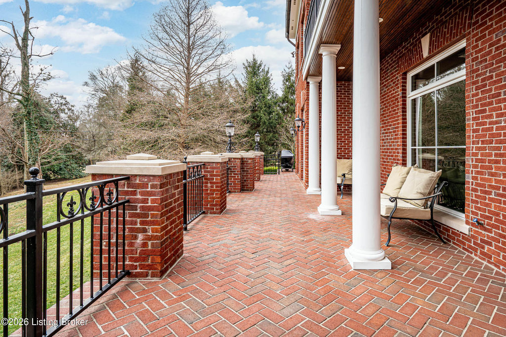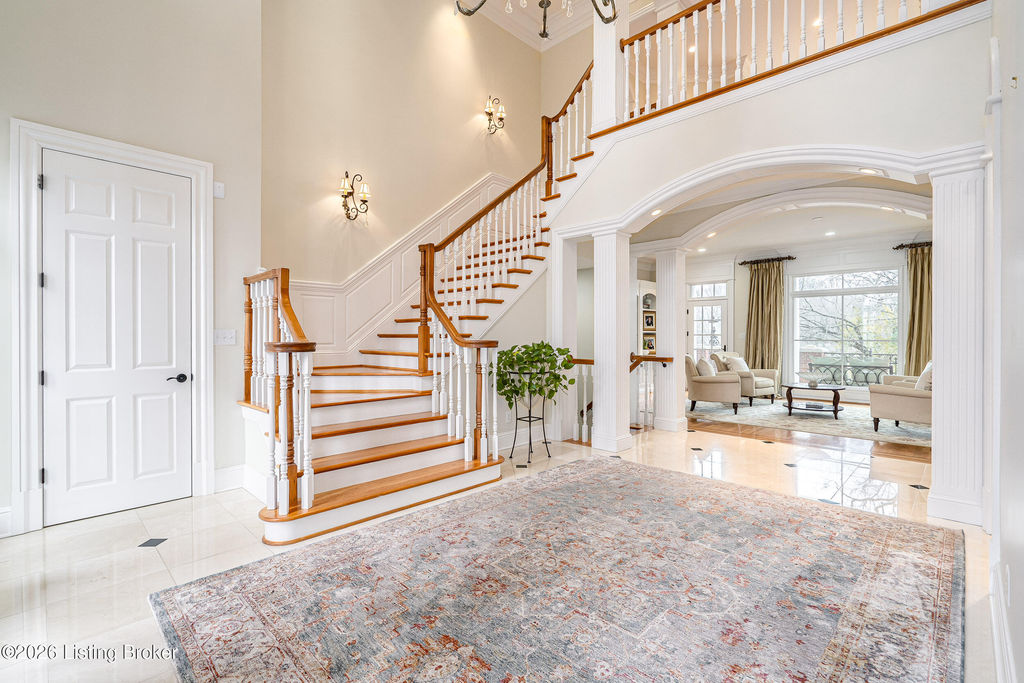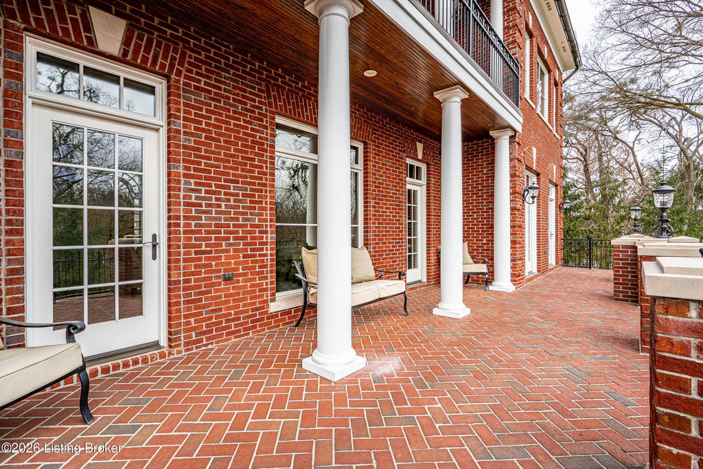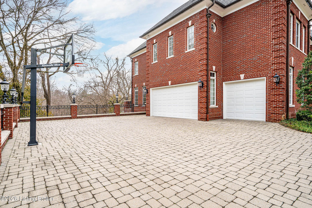 Custom-built in 2006 and ideally situated on over 1.7 acres in prestigious Indian Hills, this five-bedroom home offers quality construction, thoughtful design, and modern efficiency. Each bedroom features its own en-suite bathroom, along with multiple living spaces designed for comfort and entertaining. The home includes geothermal heating and cooling, a new roof 2026, and an elevator servicing all three floors. The welcoming foyer introduces arched entryways, detailed millwork, hardwood flooring, and vaulted ceilings that continue across the main level. The great room features built-in bookcases, a gas fireplace, and expansive rear views from the balcony that spans the back of the residence. The gourmet kitchen offers an oversized island, custom cabinetry, high-end appliances, and a butler's pantry, with an adjacent formal dining room. A tucked-away office space with access to the rear patio has potential for a first-floor bedroom. Upstairs, three generous en-suites include a well-appointed primary bedroom with a sitting area, private balcony access, dual oversized closets, and a spacious bath with soaking tub and separate shower. The lower level expands the home's versatility with a large living area, full kitchen, theater room, hidden wine cellar, and additional bedroom suite. A three-car garage completes this exceptional Indian Hills property. Featured in a Courier Journal article dated April 23, 2023.