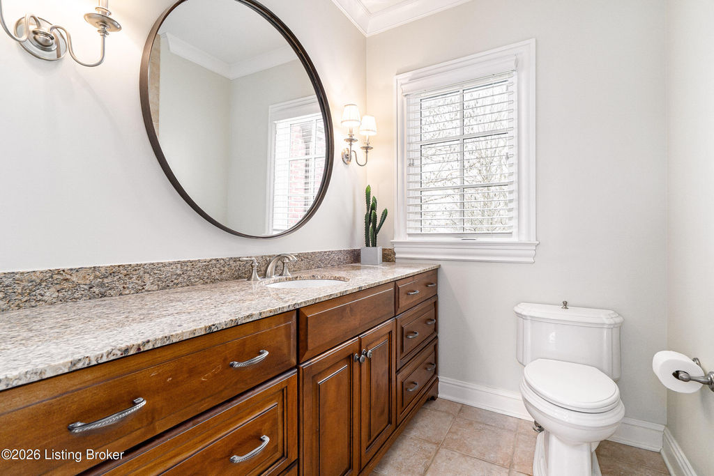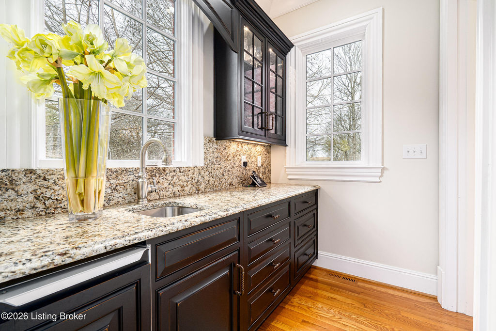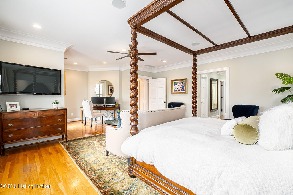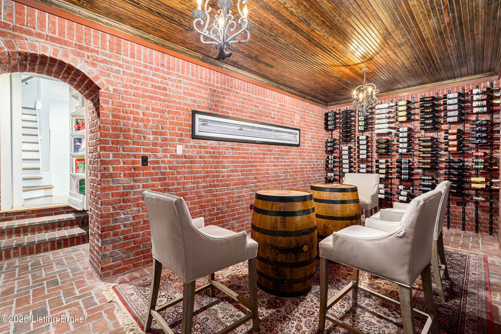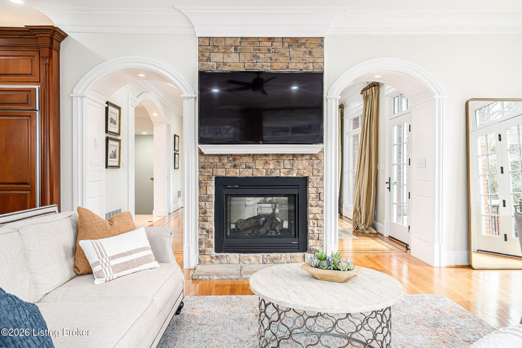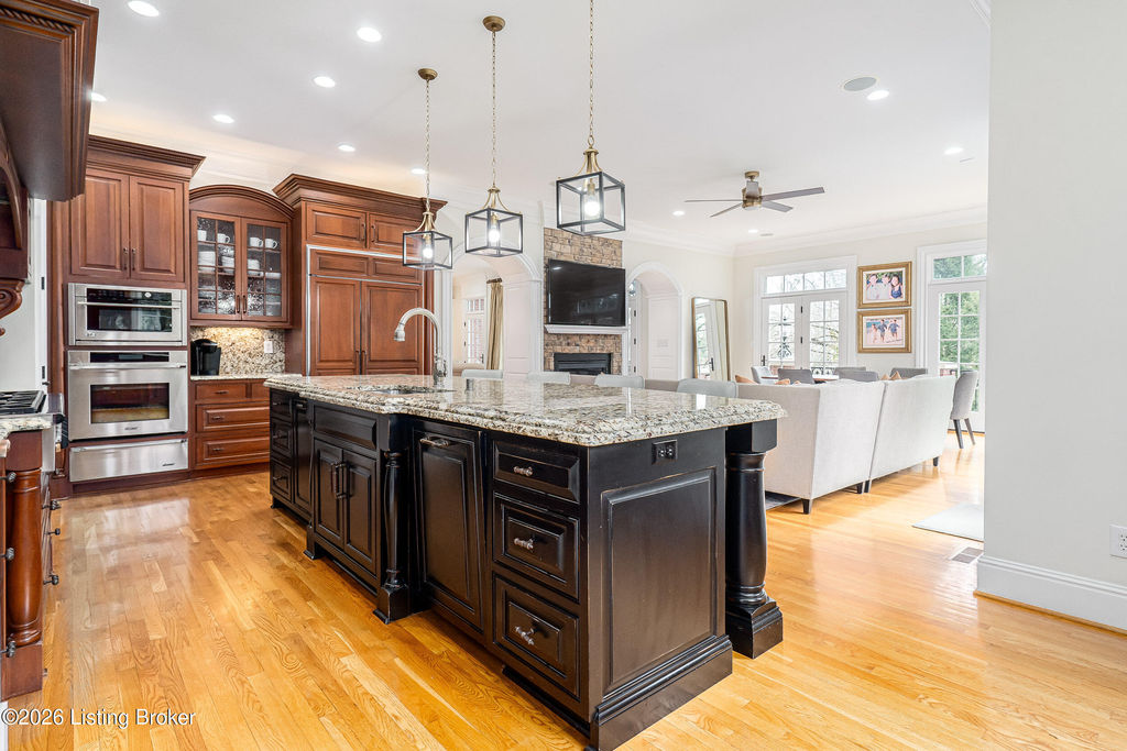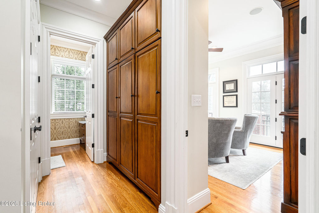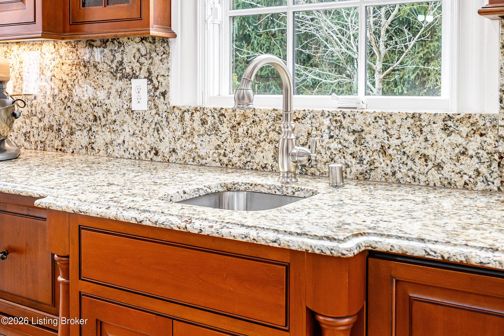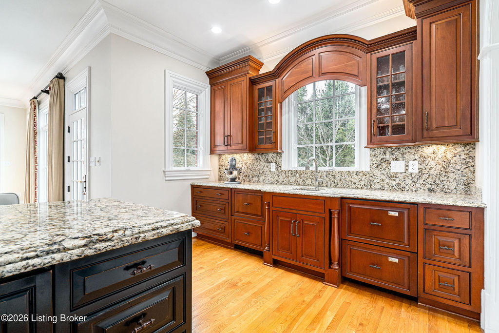 Custom-built in 2006 and ideally situated on over 1.7 acres in prestigious Indian Hills, this five-bedroom home offers quality construction, thoughtful design, and modern efficiency. Each bedroom features its own en-suite bathroom, along with multiple living spaces designed for comfort and entertaining. The home includes geothermal heating and cooling, a new roof 2026, and an elevator servicing all three floors. The welcoming foyer introduces arched entryways, detailed millwork, hardwood flooring, and vaulted ceilings that continue across the main level. The great room features built-in bookcases, a gas fireplace, and expansive rear views from the balcony that spans the back of the residence. The gourmet kitchen offers an oversized island, custom cabinetry, high-end appliances, and a butler's pantry, with an adjacent formal dining room. A tucked-away office space with access to the rear patio has potential for a first-floor bedroom. Upstairs, three generous en-suites include a well-appointed primary bedroom with a sitting area, private balcony access, dual oversized closets, and a spacious bath with soaking tub and separate shower. The lower level expands the home's versatility with a large living area, full kitchen, theater room, hidden wine cellar, and additional bedroom suite. A three-car garage completes this exceptional Indian Hills property. Featured in a Courier Journal article dated April 23, 2023.