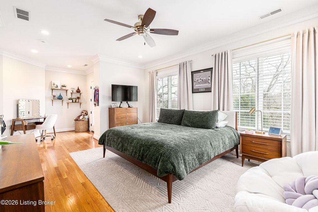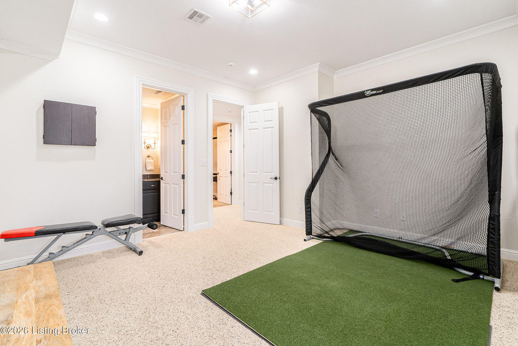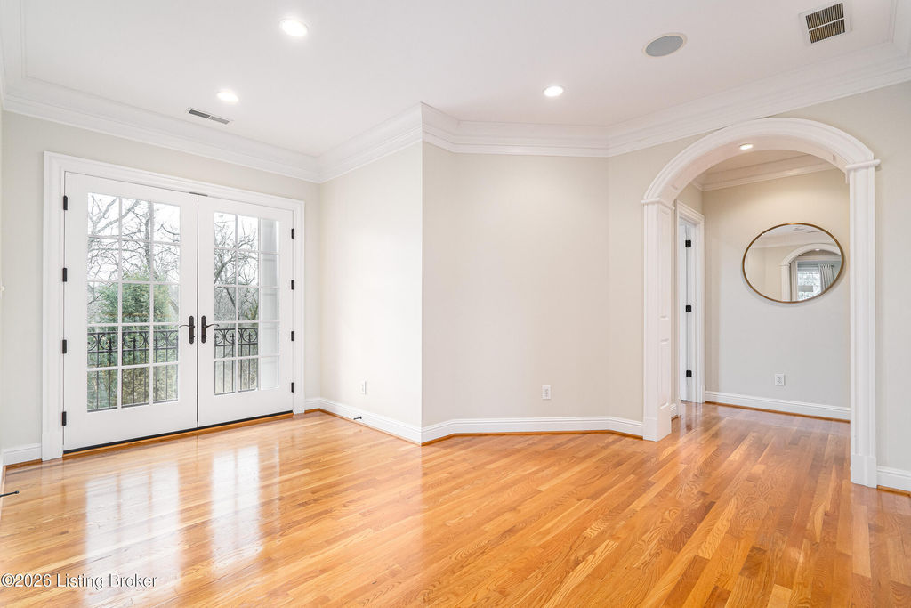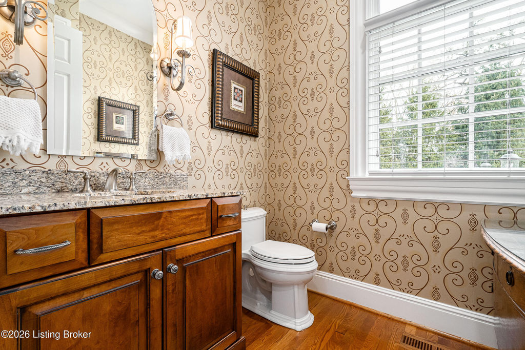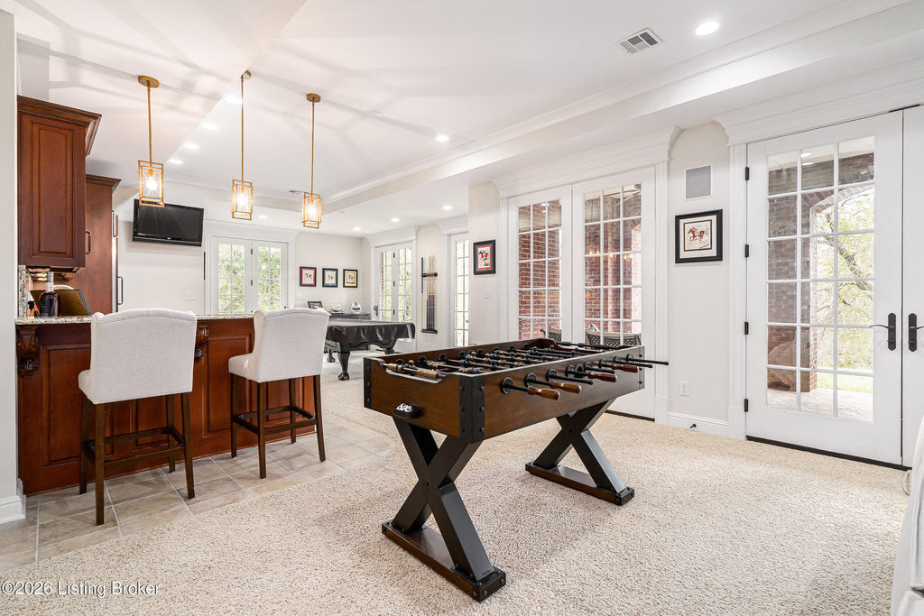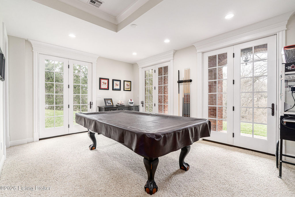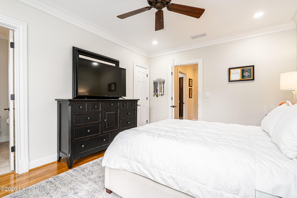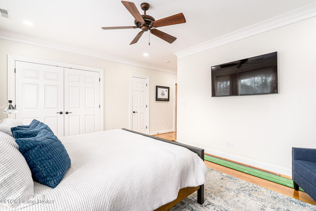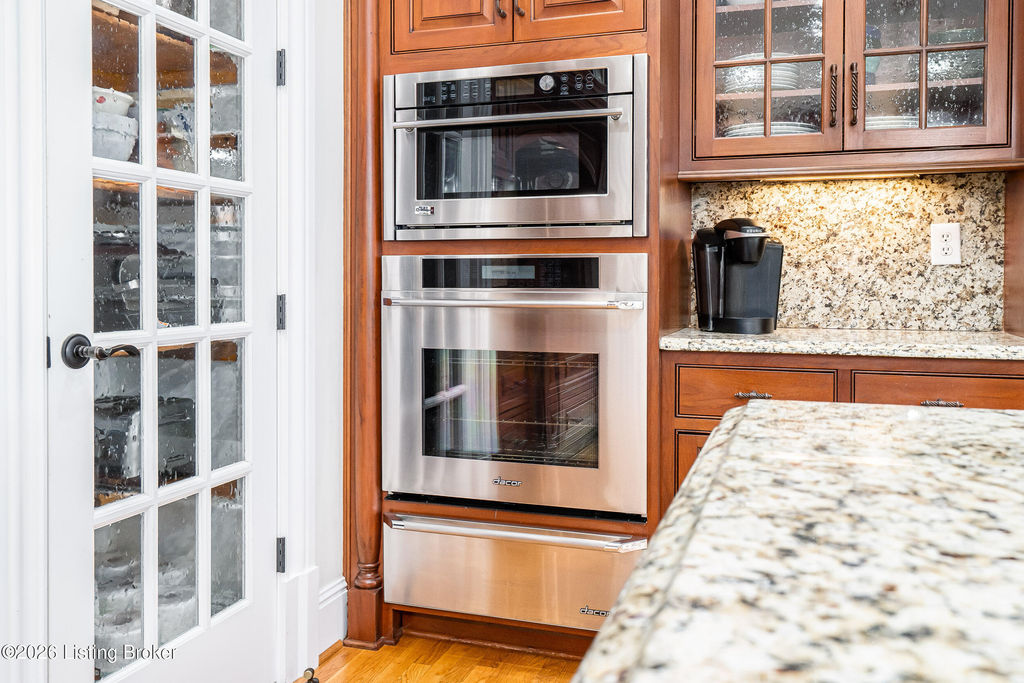 Custom-built in 2006 and ideally situated on over 1.7 acres in prestigious Indian Hills, this five-bedroom home offers quality construction, thoughtful design, and modern efficiency. Each bedroom features its own en-suite bathroom, along with multiple living spaces designed for comfort and entertaining. The home includes geothermal heating and cooling, a new roof 2026, and an elevator servicing all three floors. The welcoming foyer introduces arched entryways, detailed millwork, hardwood flooring, and vaulted ceilings that continue across the main level. The great room features built-in bookcases, a gas fireplace, and expansive rear views from the balcony that spans the back of the residence. The gourmet kitchen offers an oversized island, custom cabinetry, high-end appliances, and a butler's pantry, with an adjacent formal dining room. A tucked-away office space with access to the rear patio has potential for a first-floor bedroom. Upstairs, three generous en-suites include a well-appointed primary bedroom with a sitting area, private balcony access, dual oversized closets, and a spacious bath with soaking tub and separate shower. The lower level expands the home's versatility with a large living area, full kitchen, theater room, hidden wine cellar, and additional bedroom suite. A three-car garage completes this exceptional Indian Hills property. Featured in a Courier Journal article dated April 23, 2023.